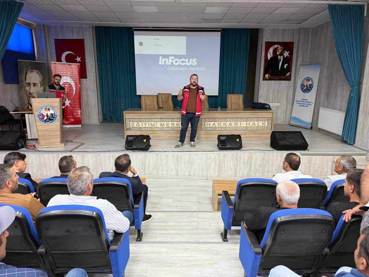 ️Halk Eğitim Merkezi Konferans Salonu'nda açılış konuşmasını yapan Şube Müdürümüz Sn. Muharrem Dündar, öğrencilerimizin taşınmasına büyük önem verdiklerini belirterek servis şoförlerinin de bu sorumluluğun farkında olması gerektiğini söyledi. Şube Müdürümüz Sn. Dündar, #Hakkâri'de öğrencilerin dörtte birinin taşımalı eğitim kapsamında olduğunu hatırlatarak, "Amacımız, öğrencilerimizin güvenliğini en üst seviyede tutmak ve trafik kazalarının önüne geçmektir. Sizlere emanet edilen çocukların güvenliği, göstereceğiniz özen, sevgi ve sorumluluk bilinciyle doğrudan bağlantılıdır. Bu nedenle yıl boyunca benzer toplantılar ve eğitimler düzenlemeye devam edeceğiz," dedi.